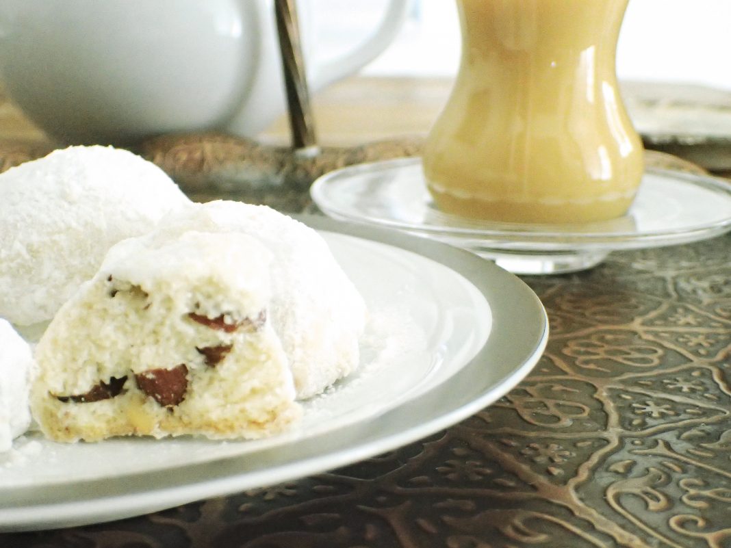 Many cultures have some version of Kourabiedes- Mexican wedding cakes, Russian tea cakes, Swedish tea balls, Viennese crescents. The reason there are so many versions of this cookie is because it is divine. This barely sweet shortbread, rolled while hot and buttery in powdered sugar to make a layer of creamy icing, then dusted with more sugar after cooling so it’s white like snow, is everywhere during the holidays here in Greece (along with the moist, syrup-kissed, walnut filled melomakarona). It has just 3 ingredients, so it is also divinely tricky- we are not relying on showy spices or splashy chocolate for impact, but texture. A little care and three simple steps and your buttery Kourabiedes will be rich, crumbly, and ethereal as a snowflake.