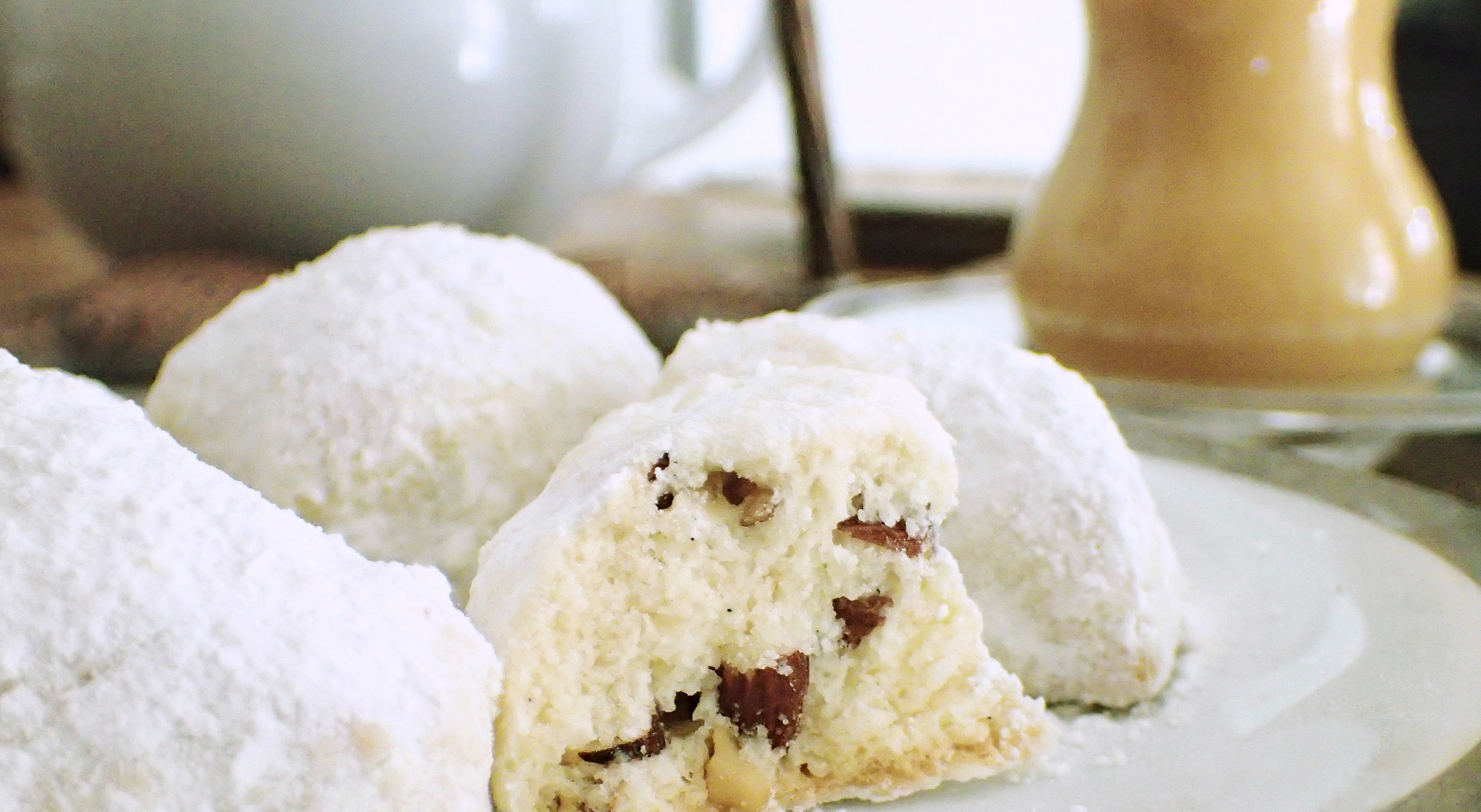 Kourabiedes! Also eggless, but rich with butter. These are light, crumbling, snowy white, and the perfect counterpart to soft, dark, and spicy melomacarona. They also take less time. (Here’s how to make Kouabiedes, Greece’s favorite Holiday Butter Cookie.)
