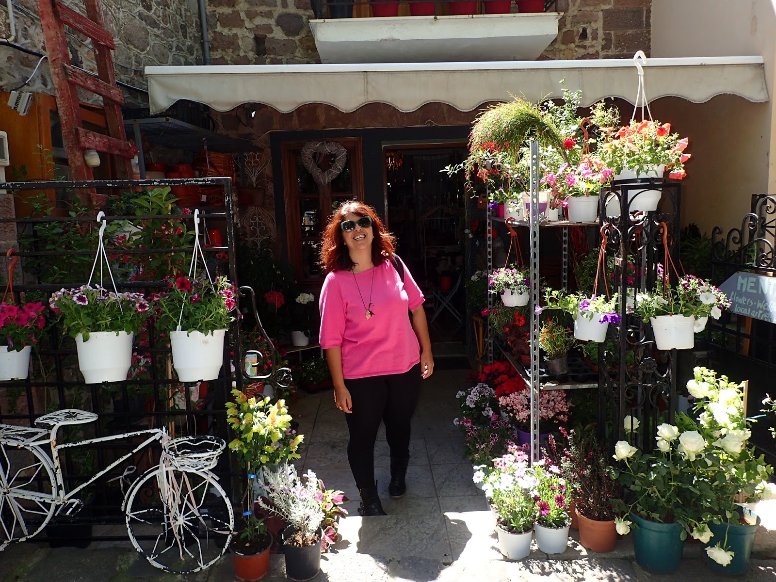 A couple more turns in the road and we are there climbing out of the truck and wandering up the cobblestone paved hill, shaded by an arbor, and lined with cafes and shops. There is not a hint of touristic kitsch anywhere- just beautiful, elegant, handmade things-